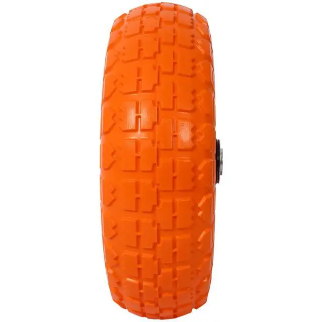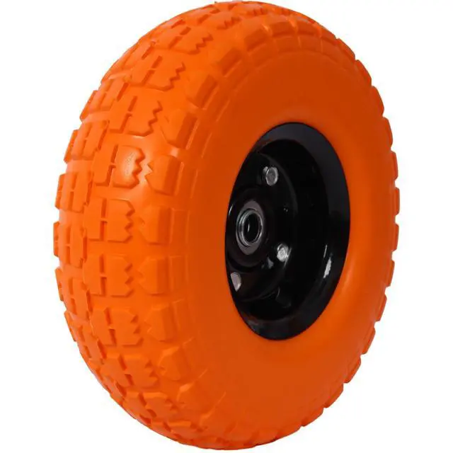Rib Pattern Treads for Free-Rolling Applications These tires are perfect replacements for non-drive tires on your lawnmower or your ever-busy hand trucks. They are quiet, can provide high directional stability, and have less rolling resistance on hard floors- important features for load-carrying equipment like hand trucks, dollies, trolleys, wagons, and more. Worried about these tires' outdoor performance? These ribbed run-flat tires provide maximum traction in both wet and dry weather. Experience great traction even on wet pavement as these tires prevent hydroplaning with their superior water evacuation and even tear and wear. The AR-PRO Advantage Still on the fence about AR-PROs solid rubber replacement tires? Here are the major advantages you can enjoy: Reliable and comfortable tires made from a thick and solid rubber construction perfect for both smooth surfaces and off-road applications. Haul heavy loads without worries as these solid rubber tire and wheel assemblies have rated load capacities of 500 pounds These tire and wheel assemblies can work as hard as you. Made from premium plastic is both hard and tough and premium natural rubber that can withstand being always on the move. We use non-marking rubber to protect the floor surfaces and prevent unsightly marks on the pavement. Theres no need for gentle handling. These solid rubber tires can take a lot of beating. Rim-bonded tires for zero wheel slippage due to mounting errors. Extra tire weight provides added stability and lowers the center of gravity for better load handling on hand trucks, trolleys, and wheelbarrows. Rough and rocky terrain? No worries. Even when punctured or cut, these tires will keep on going! It will take a lot to destroy these solid-rubber tires! Opt for maintenance-free tires. Do you need to patch your tires every so often? With these solid rubber tires, youll never need to stop for tire repairs! Highly durable with 3x longer lifespan than pneumatic