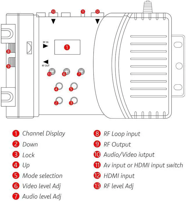 RF modulator for TV allows users to adjust the AV output level, catering to various equipment sensitivities and preferences