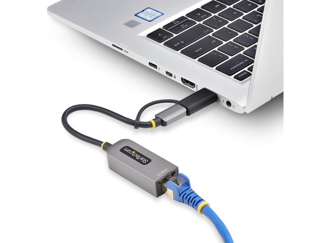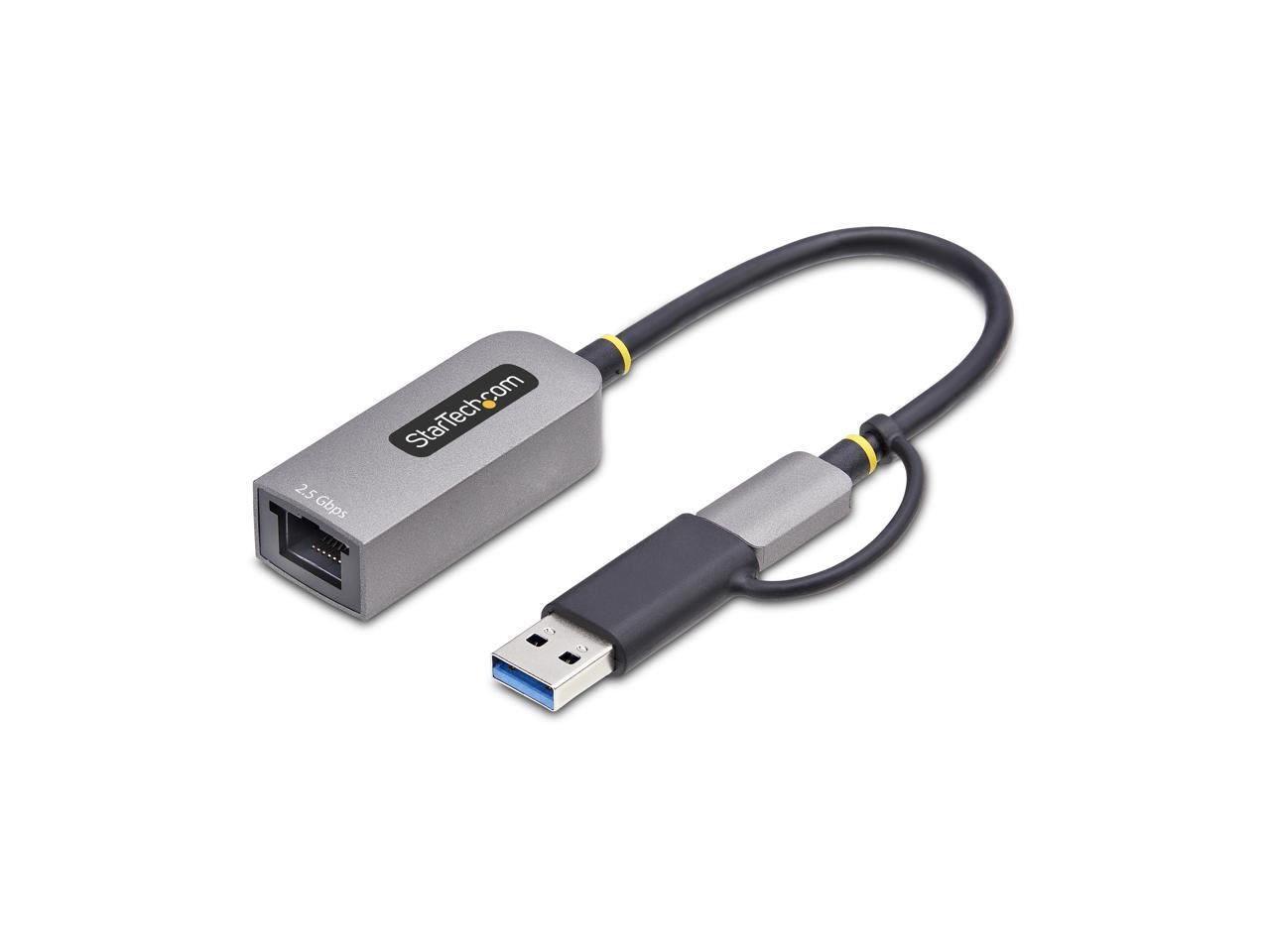 StarTech 2.5GbE USB-C to Ethernet Adapter with USB-A Converter, NBASE-T NIC, USB 3.0 Type-C 2.5/1G Multi Speed Network, Thunderbolt Compatible, Windows & Mac Model U2GA-USB-C-ETHERNET