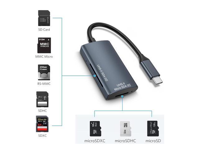 USB-C SD 4.0 UHS-2 Card Reader,2-in-1 UHS2 SD / TF Memory Slot Card Reader, for SDXC, SDHC, SD, MMC, RS-MMC, Micro SDXC, Micro SD, Micro SDHC Card, UHS-II, and UHS-I Cards,OTG Supports for Cellphone