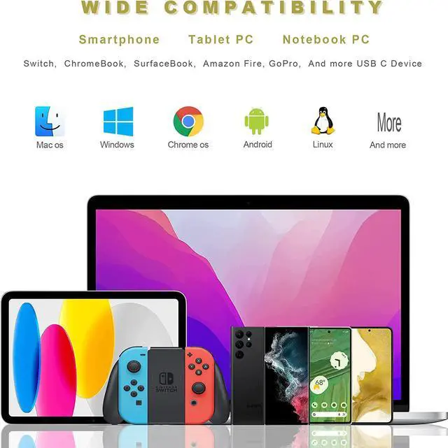 USB-C male port to laptop / tablet / smartphone / camera with USB Type-C female port, compatible with mac os, windows, chrome os, linux, android, etc