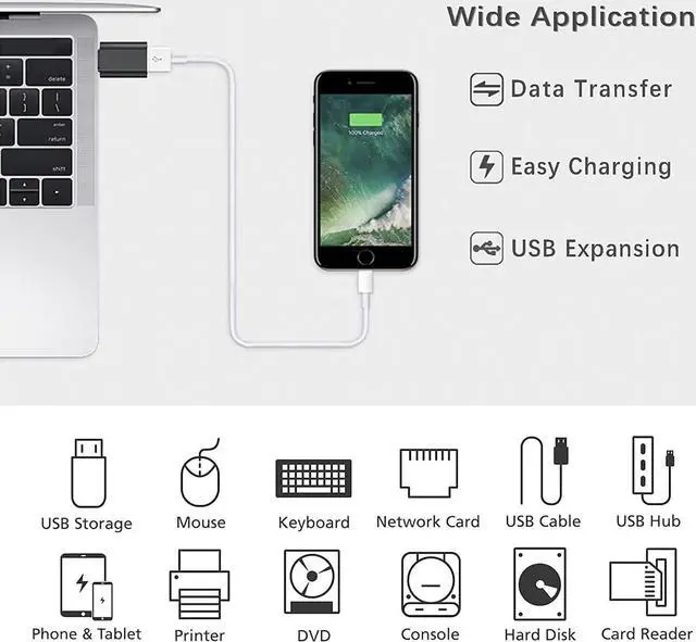 USBC to USB adapter: Can switch between USB C and USB A ports for better compatibility between USB-C and USB-A devices. Provides data transfer, device charging, memory space expansion, and additional computer peripherals