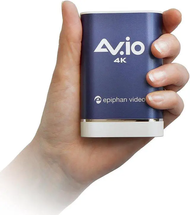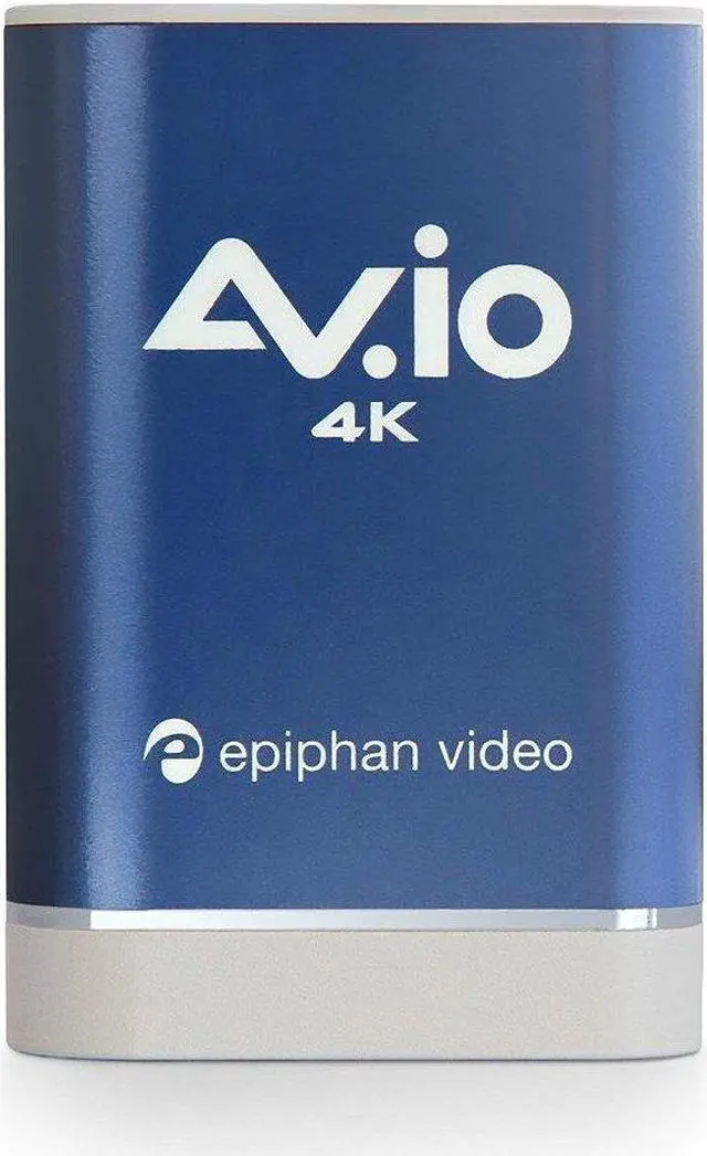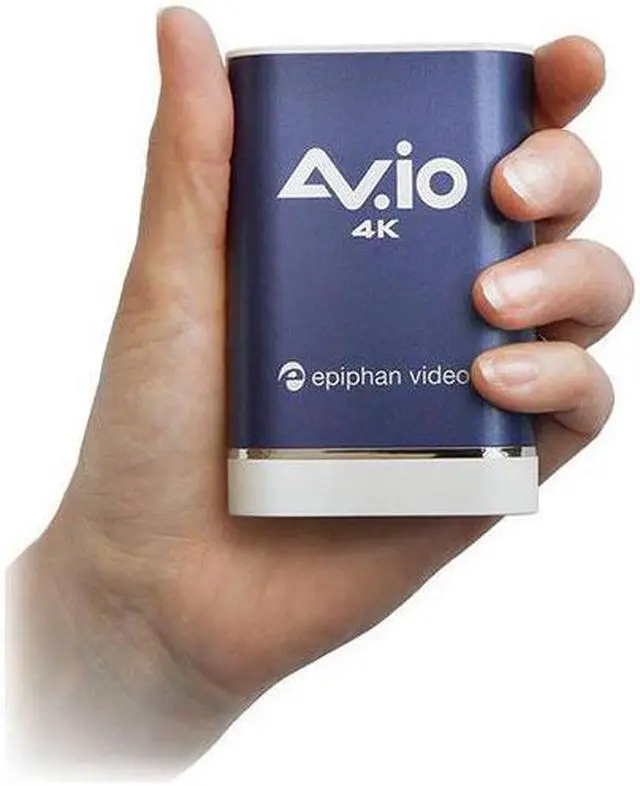 Capture 4K Video The plug and play Epiphan AV.io 4K™ capture card is auto-detected by Windows, Mac and Linux operating systems. To capture HDMI video sources, simply connect the included cables from your video source to AV.io 4K then connect AV.io 4K to your computer via USB. Choose Your Resolution AV.io 4K captures resolutions up to 4096×2160, with 4K UHD video streaming at 30 fps and 1080p at 60 fps. Choose to use your video at its original resolution or let AV.io scale it for you to exactly what you need. 4K Streaming Anywhere This hand-size grabber fits in any kit, or even your pocket, in a pinch. It is a USB video grabber, so its HDMI capture works perfectly up to 4K on any computer with USB 3.0. Ultra Low Latency AV.io 4K captures video and audio as it happens. Your video capture software gets the frames so fast (just 1 to 2 frames of latency), you may even find it difficult to see any lag at all. Crystal Clear Audio AV.io 4K captures PCM audio over HDMI™ at up to 24-bit 96 kHz. The two-channel stereo audio output has automatic resampling at 48 kHz and encodes in 16-bit.