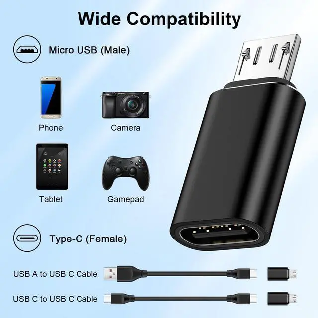 The micro usb to type c adaptor is small, lightweight, you can take it with you wherever you go.