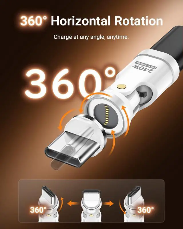 | PD 240W, 180°+360° Rotating | PD 240W, 180°+360° Rotating | 60W Charging, Audio Function | Anti-lost Loop, Dual Chips | PD 240W, 180°+360° Rotating | PD 240W, 180°+360° Rotating |