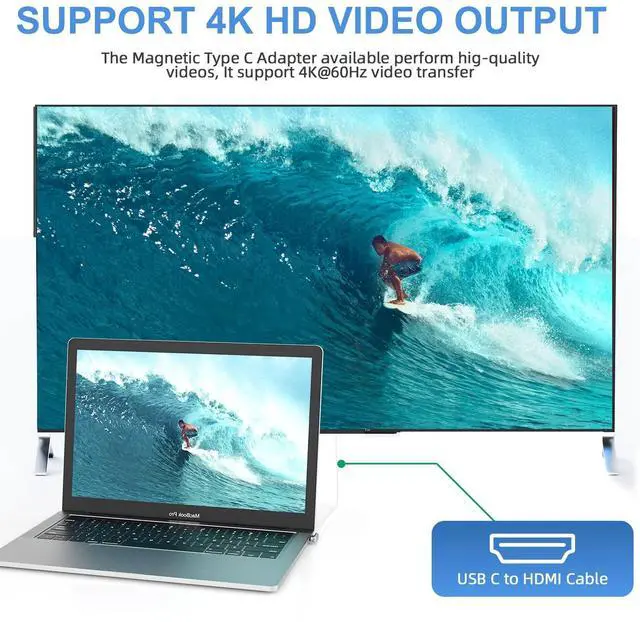 The usb c magnetic adapter can project pictures from devices to a large-screen TV to let you have a high definition video enjoyment.