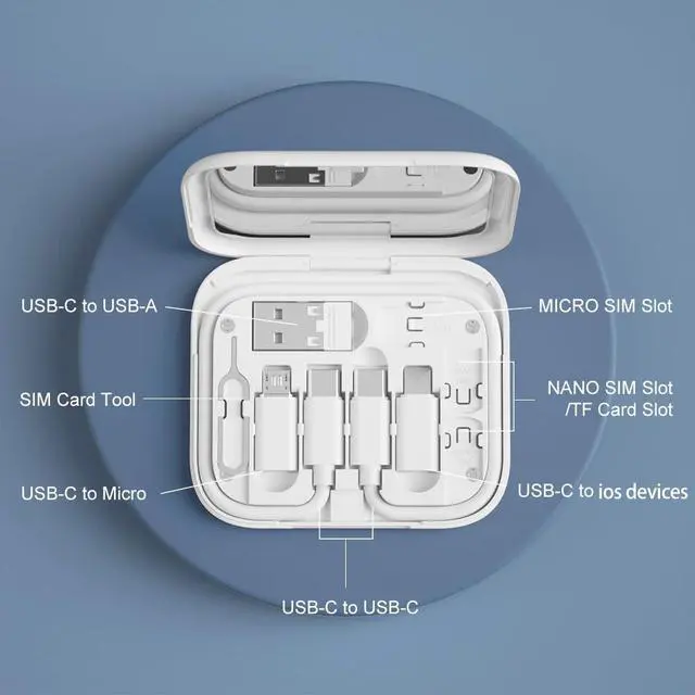This USB charger cable box also has a SIM card tool inside, which can help you easily switch between different SIM cards for your phones