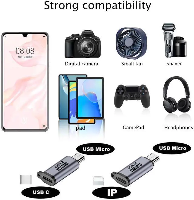 [Fast loading and data transfer]:This adapter supports fast charging up to 2A and supports a data transfer speed of 480Mbps (40-60MB/S).