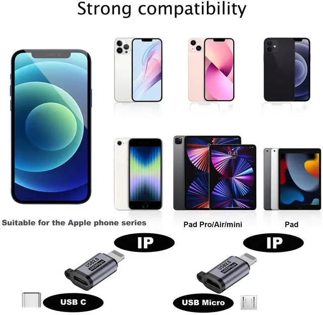 USB C to Micro adapter, IP to USB C, and Type-C to USB A adapter, (9 pieces)supports fast charging up and supports a data transfer