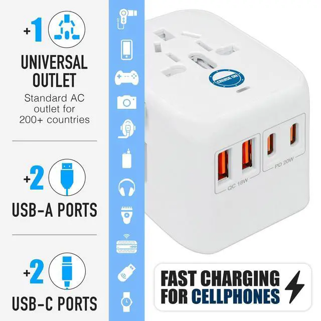 ![Alt view image 6 of 7 - Universal Travel Adapter, Cruise Approved (incl Royal Caribbean, Disney, MSC) - International Power Adapter [2 USB-C, 2 USB, AC] World Travel Plug Adapter Converter USA, Italy, Europe, Asia](https://c1.neweggimages.com/productimage/nb640/C691D260421091IQY76.jpg)