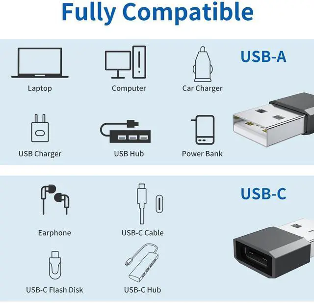 - We provide 4 × USB-C (female) to USB-A (male) adapter,Applicable to a variety of scenarios, such as living room, room, office, car, etc.