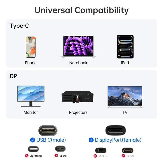 Please note that this is USB C to DP converter, which is the ideal adapter for DP monitor. It is not compatible with HDMI, VGA or DVI display. Please confirm the interface of your monitor before purchaing