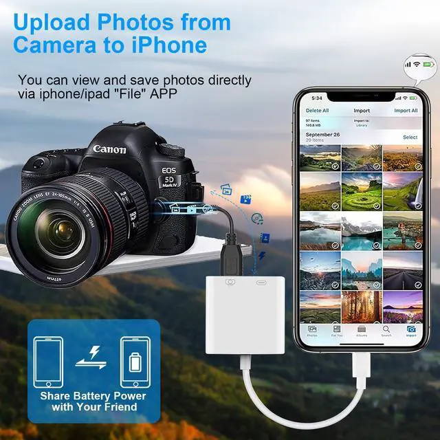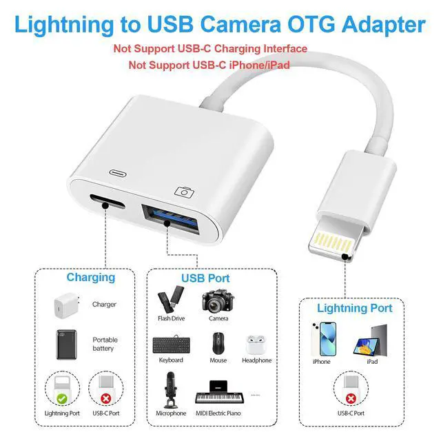 ![Main image of Lightning to USB Camera Adapter, [Apple MFi Certified] USB 3.0 Female to iPhone iPad Adapter with Charging Port, Plug and Play OTG Converter Cable Support Card Reader Flash Drives Keyboard](https://c1.neweggimages.com/productimage/nb640/C688D2604260RWY81DB.jpg)