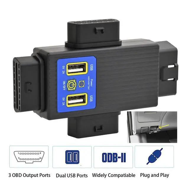 iKKEGOL Pocket 1 Male to 3 Female OBD Cable Splitter Converter Adapter with 2 USB Adapter This versatile and compact OBD cable splitter is designed to enhance your automotive experience. With its 1 male to 3 female configuration, it provides seamless connectivity for multiple OBD devices simultaneously.