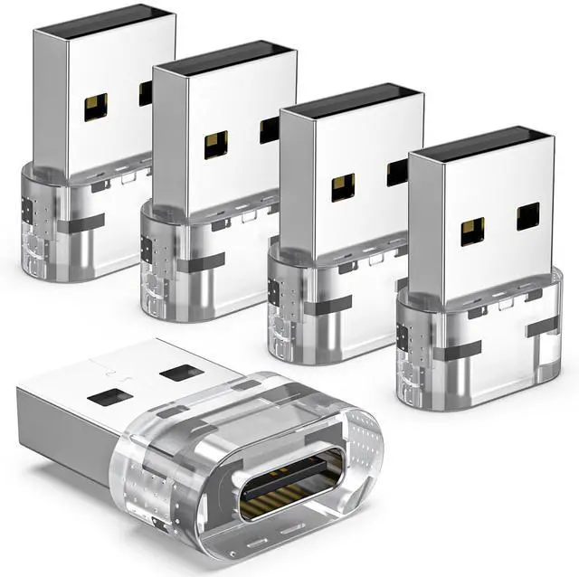 USB to USB C Adapter 5Packs, USB A to USB C Adapter Male to Female for iPhone 17/16/Pro/Plus, iPad, Samsung S26/S25, Apple Watch Ultra, Car, Laptop Charger, Quest 480Mbps, Transparent Shell
