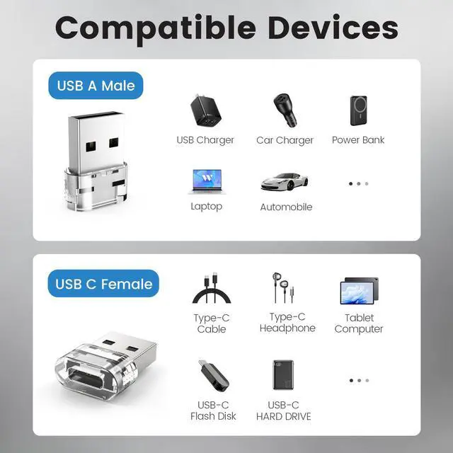 Universal Compatibility for Daily Devices: Turn any standard USB-A port into a USB-C port. Use this USB-C to USB adapter for smartphones, tablets, earbuds, mice, keyboards, or flash drives. This USB to USB-C adapter works with car chargers, wall chargers, laptops, power banks, MagSafe chargers, and Quest Link for basic data connections
