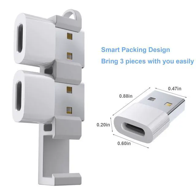 USB to USB C Adapter,3Pack USBC Female to USB A Male with Convenient Carrier, Type C Converter for iPhone 17/16/15/14/13/12, iPad, iWatch, AirPods,Galaxy S25/S24 (White)