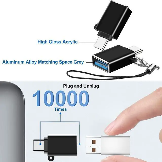 - This usbc to usba adapter engineered for enhanced durability, the USB C male and USB female connectors are designed to be plugged and unplugged up to 10000 times.