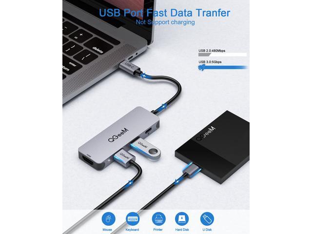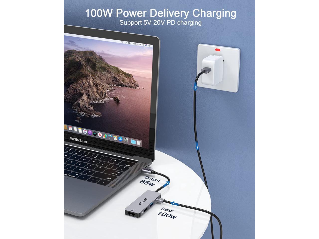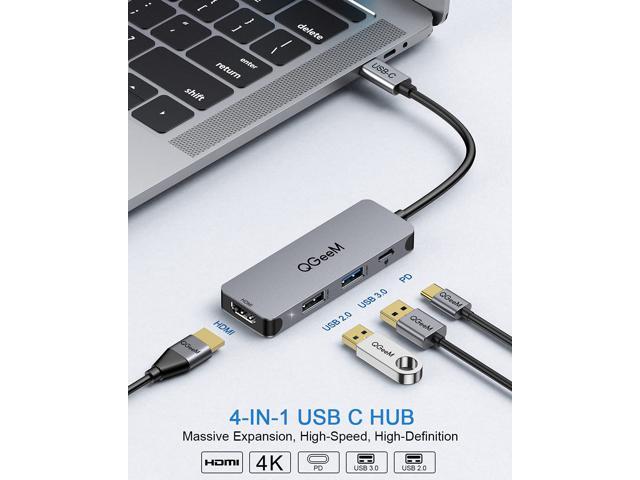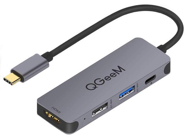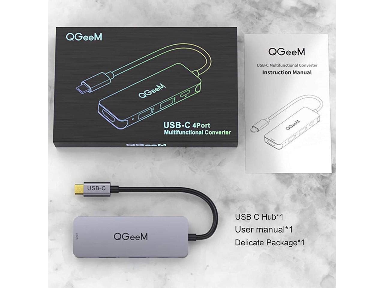 QGeeM USB C Hub, 4-in-1 USB C Adapter with 4K HDMI Output, USB 3.0, 100W PD Charger, USB 2.0, Compatible with MacBook Pro 2019/2018 and Other Type C Devices
