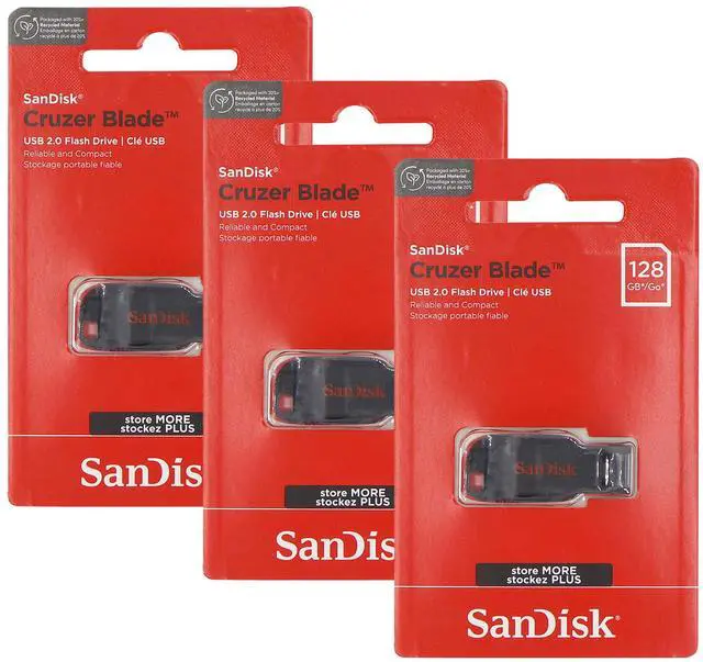 - 3x SanDisk Cruzer Blade USB Flash Drive - 128GB (Red)
