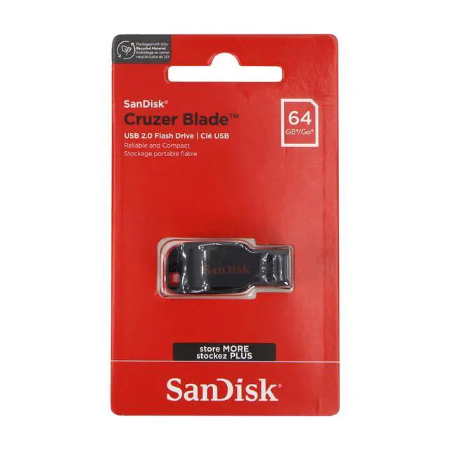 Designed by SanDisk, a leader in flash memory innovation, the Cruzer Blade USB Flash Drive packs generous capacity into a compact form. Available in sizes up to 128GB1, this USB drive can hold all your must-have files.