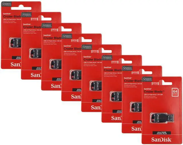 - 8x SanDisk Cruzer Blade USB Flash Drive - 64GB (Red)
