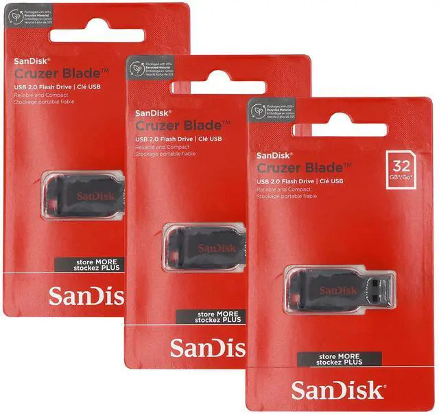 SanDisk Cruzer Blade USB Flash Drive - 32GB (Red) With its stylish, compact design and generous capacity, the Cruzer Blade USB Flash Drive makes it easy to back up, transfer, and share your files. With a capacity of 32GB, this USB drive lets you carry your photos, movies, music, and personal data wherever you go.