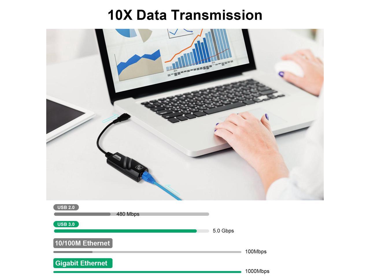 - Super Speed. USB 3.0 data transfer rate up to 5 Gbps for 1000 BASE-T network performance with backwards compatibility to 10/100 Mbps networks; Connect the USB NIC adapter with a Cat 6 Ethernet cable (sold separately) for the best performance.