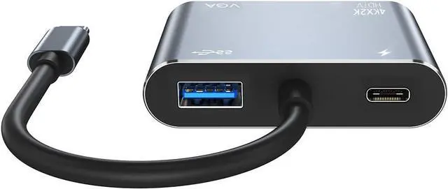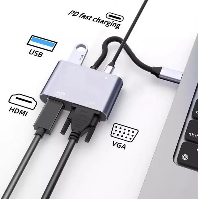 This 4-in-1 USB C Hub can turn the USB-C(ThunderboIt 3 Compatible)port into an HDMI,a VGA,USB 3.0,and a Type C Power Delievery Port.IdeaI for office,conference,and home theater entertainment.