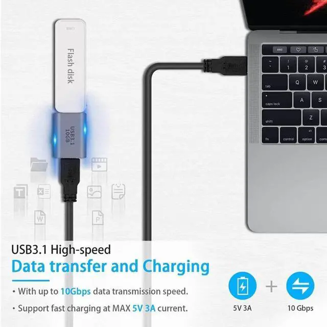 USB A to USB C Adapter: Standard USB 3.1 Gen 2, this USB to USB C Adapter supports up to 10Gbps data transmission, faster than USB 2.0, enabling fast file transfer.