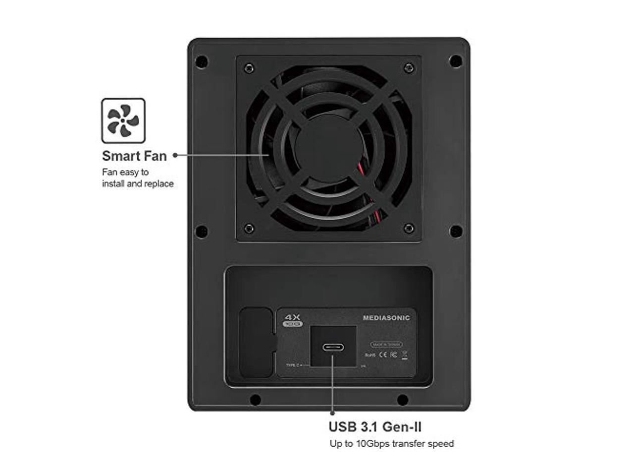 Mediasonic Raid USB 3.1 Gen 2 Type C 4 Bay 3.5? SATA Hard Drive Enclosure with USB 3.1 Hub Feature - USB-C 3.1 Gen 2 10Gbps (HFR7-SU31CH) (HFR7-SU31CH)