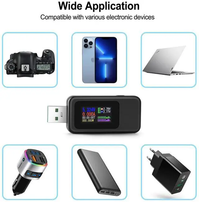 - IPS LCD Display: Uses a 0.96-inch IPS high-definition color LCD display to display the state of charge of the appliance, voltage, current, capacity, energy, power, equivalent impedance, temperature and other indicators at a glance. 4-bit accuracy for more accurate measurements.