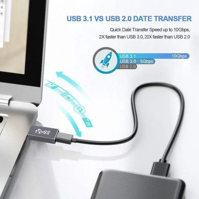 Updated Charging & 10 Gbps Data Transmission Speed??This speed of this usb a to usb c/type c adapter can reach 10Gbps??and both sides can reach up to the speed??do not need to worry about that working speed. ??USB 3.1 Gen 2 Adapter?? Allows to Connections to your USB Type-A laptops or chargers with usb type-c cable?? usb type-c hubs and usb type-c peripherals. ??New Technology??Adopt IC chip technology?? the Max input voltage of AM port is 20V?? COULDN`T be powered by quick charger plug for your device. ??Function Easily??Plug & Play?? no driver required. With USB 3.1 protocol?? high speed data transfer.