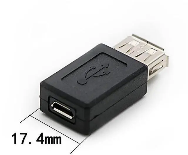 USB 2.0 A Female to USB Micro Female Adapter Converter. Supports data transfer speeds up to 480 Mbps