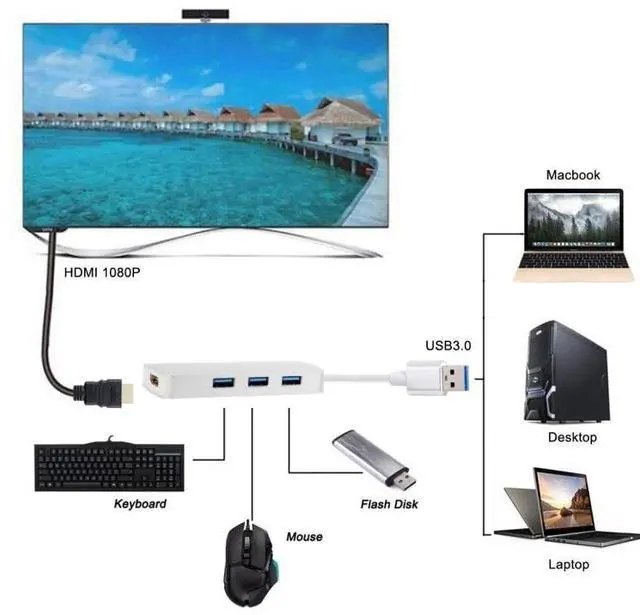 1. The Adapter is used to connected a USB-enabled devices( such as laptop, desktop) with a HDMI-enabled devices( such as monitor, projector, TV) for multi-monitor solution, extending working space with split-screen, mirroring display, etc.