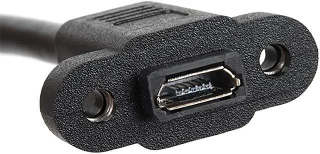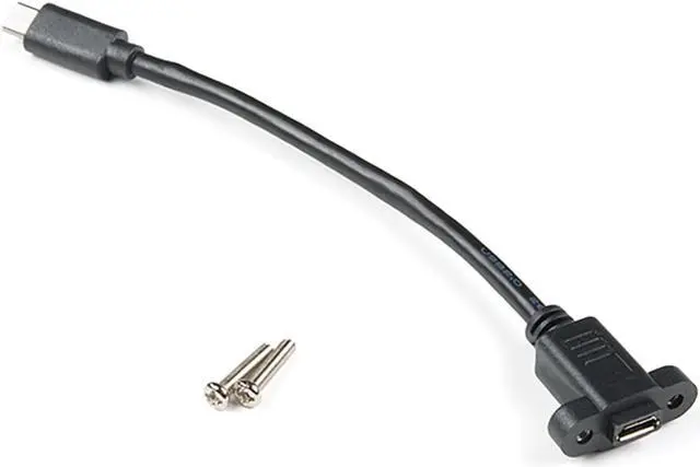 This panel mount USB micro-B extension cable enables you to more easily enclose a project that contains a USB micro-B port. The cable is 6" in length and includes two 14mm M3 screws compatible with the cable's 3mm panel mount holes, spaced 16.5mm apart.
