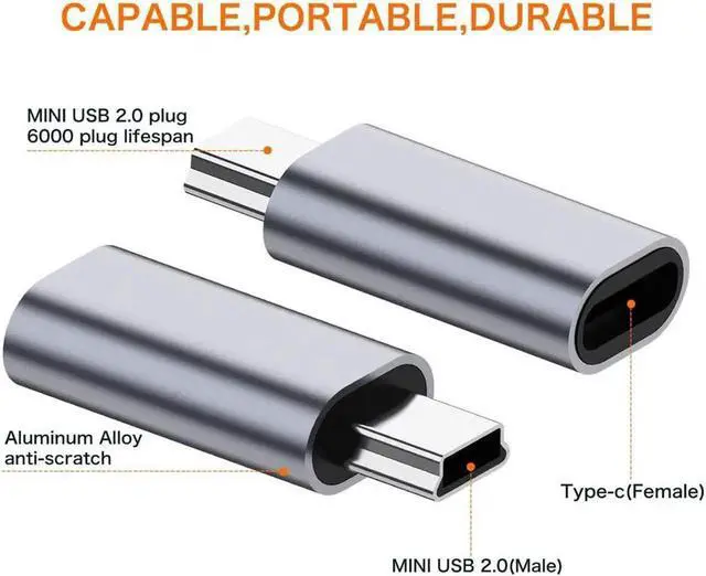 Adapter]: High quality Aluminum Body It is a minimalist solution. Charge and data sync for Mini USB device by connecting with the Standard Type-c Cable. Super quality Cable adapter for Mini usb Device.