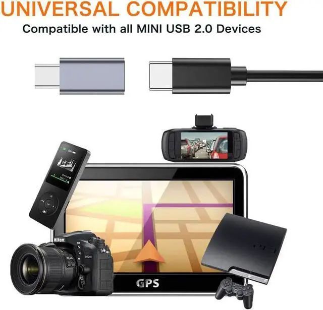 [Universal Compatibility ]: Mini usb 2.0 Adapter is compatible for GoPro Hero HD Hero 3+ PS3 controller Astro A40/50 MP3 player Digital Cameras like Canon Sat Navigation Garmin GPS Receiver Zoom Mic Dash Cam etc and other devices with Mini 5 Pin connector.