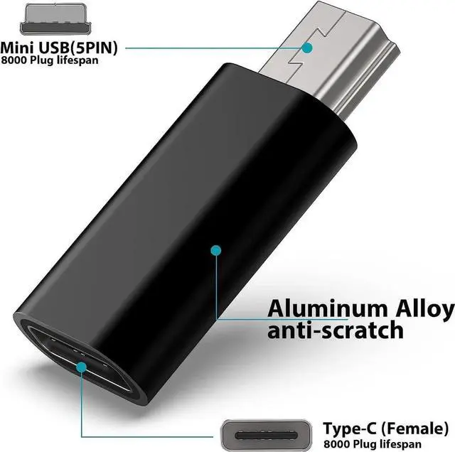 What You Get: We provide 2 × USB Type C (Female) to Mini USB (Male) black adapter During the use of our products if you have any questions or dissatisfaction please contact our customer support team we will serve you wholeheartedly