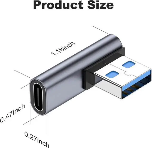 90 Degree Left and Right Angle DesignLeft and Right angle with 90 degree L shape design allows the cable to have a suitable direction which can avoid the wear of the input port of the device prolong the service life. High Speed ChargingThe adapter supports the maximum 5V/3A 15W power delivery providing your device with the fastest possible charging. 10Gbps Data TransferThe adapter can provide data transfer speed up to 10 Gbps. Small and PortableUltra thin size ultra compact design durable aluminum shell fine appearance details and strict quality inspection standards. CompatibilityFor iPhone 14 13 12 11 Plus Pro Max Apple iWatch Watch Series 8 7 SE Airpods iPad Air 4 5 Mini 6 Galaxy Note S20 S21 S22 Plus and More.