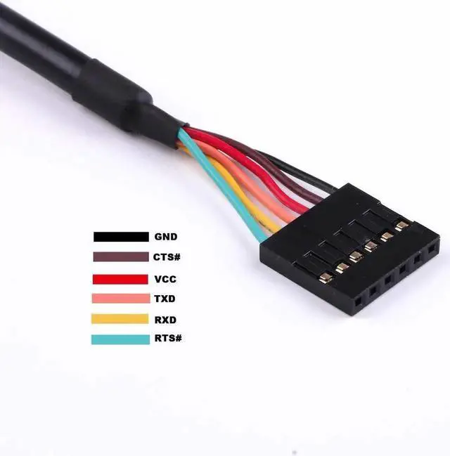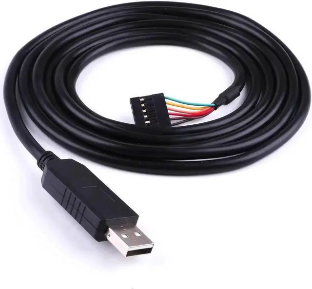 USB to UART cable with 5V TTL level UART signals. 6 output wires terminated by a 6 way 0.1 Single-In-Line (SIL) connector6 way outputs provide Tx Rx RTS# CTS# VCC and GND. Data transfer rates from 300 baud to 3 Mbaud at TTL levelsConnect directly to a microcontroller UART or I/O pins. 5V TTL output allows external logic to be powered from the USB portReplace MAX232 type level shifters allowing for direct connection of products to PC via USBFT232R chipset provides single chip USB to asynchronous serial data transfer interface. Works with all Windows and Mac OS versions.