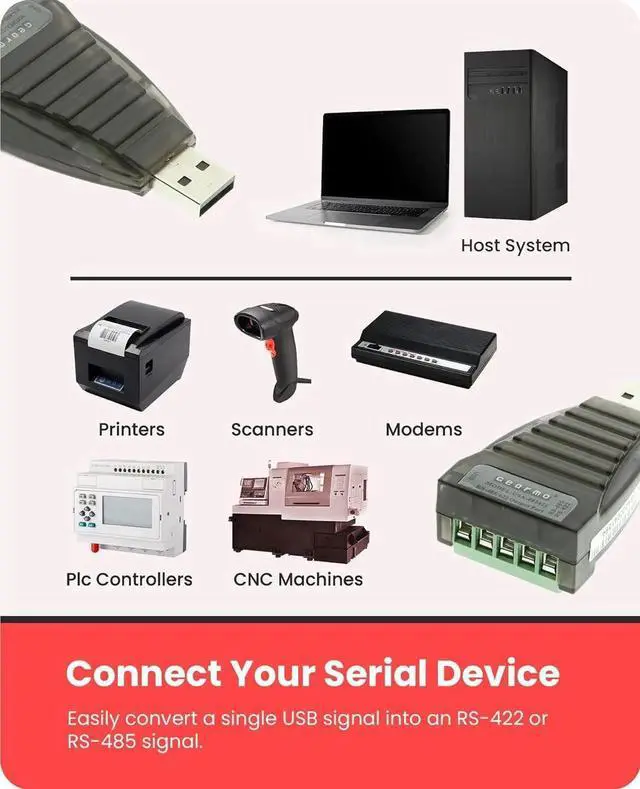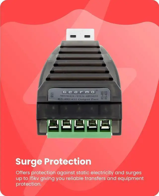 UNIQUE CIRCUIT - The converter contains a unique I/O circuit with an internal zero delay. The auto transceiver within controls the data stream automatically without any handshaking signals such as RTS DTR etc. SUPER COMPACT DESIGN - The USA-422485 is a small compact converter that handles big communication jobs in converting RS 485 to RS 422. NO ACCIDENTAL DISCONNECTS - Make your connections safe simple and secure with screw down terminals on our RS422/485 adapter. Just strip your wires insert and tighten it downWHY Gearmo? Your Trusted Partner based in the USA Providing Advanced Engineering Highly Reliable and Superior Built Products to handle the most demanding industries for over 20 years.