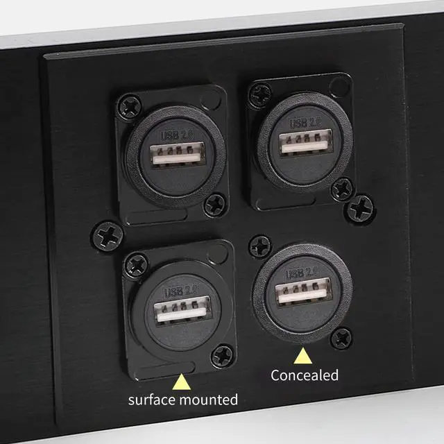 D-type USB2.0 to USB B female-to-female straight-through panel installation module, standard D-type installation size, installed on ground sockets, desktop sockets, and 86 panels, providing great convenience for engineering use. Rugged zinc die-cast housing for durability and special needs in some harsh conditions.