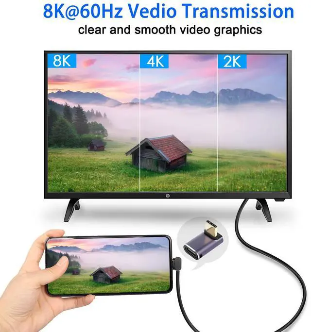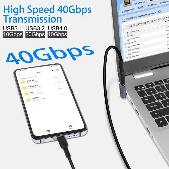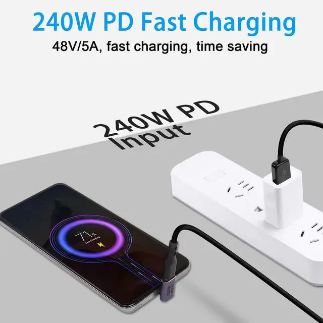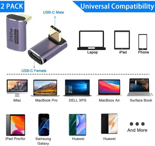 240W 40Gbps USB C male to female 90 degree angle adapter, with a right angle design, ideal for use in tight spaces. Avoid wear and tear on cables and device ports. USB C High Power PD Adapter with new USB Type-C PD technology, supports up to 240W high power fast charging. Provides higher power support for high-performance laptops or other devices. With data transfer speeds up to 40Gbps and support for 8K@60Hz audio and video transmission, it gives you an exceptional audio and visual experience. Compatible with all commercially available USB Type-C devices, such as Samsung Galaxy, Google, MacBook, Nintendo Switch, Steam Deck, LG, ZTE, Huawei, Xiaomi, oppo, Vivo, OnePlus, Lenovo and other USB C devices.
