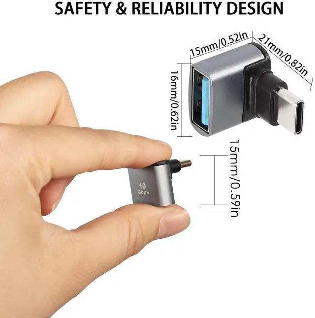 • [90° Angle]USB C male to USB A female 90 degree right angle adapter,Ideal for computers, monitors or small spaces near walls. Avoids wear and tear on cables and device input ports.