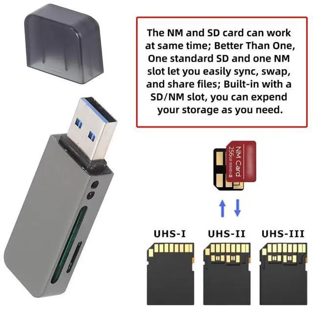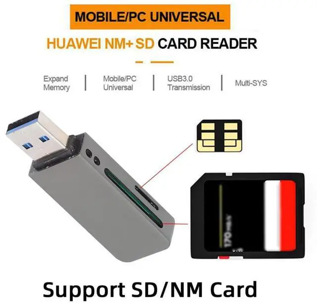 USB 3.0 to Nano Memory NM Card & SD Card Reader with Dual Port Writer for Camera & Laptop & Tablet & Mate Serial Phone