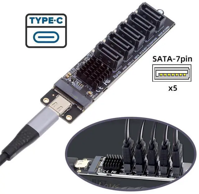 10Gbps USB Drive USB-C Type-C to NGFF Key B+M SATA 6Gbps 5 Ports Adapter Converter PM Port Multiplier Selector JMB575 JMS580