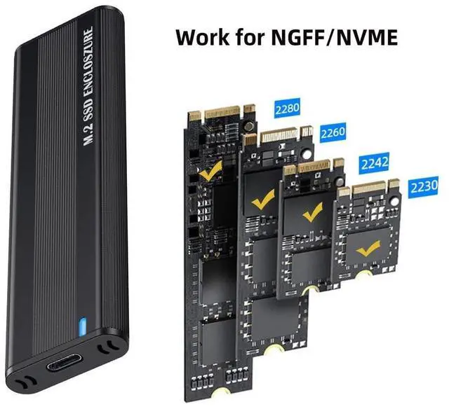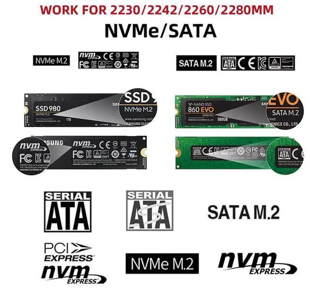 Supports NVMe PCIE M-Key / B+M connectors M.2 SSD. Applicable to sizes 2242 / 2260 / 2280 solid state drivers.