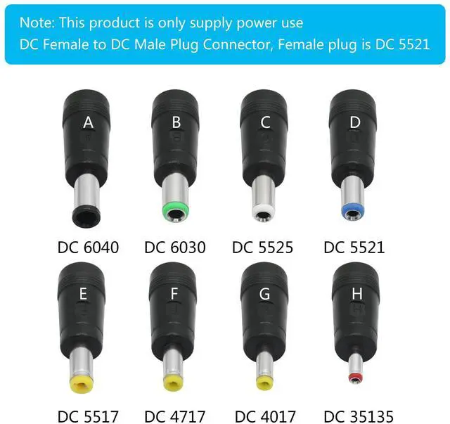 8Pcs DC 5521 Female to DC 6040 Male, DC 5521 Female to DC 6330 Male, DC 5521 Female to DC 5525 Male, DC 5521 Female to DC 5521 Male, DC 5521 Female to DC 5517 Male, DC 5521 Female to DC 4717 Male, DC 5521 Female to DC 4017 Male, DC 5521 Female to DC 35135 Male