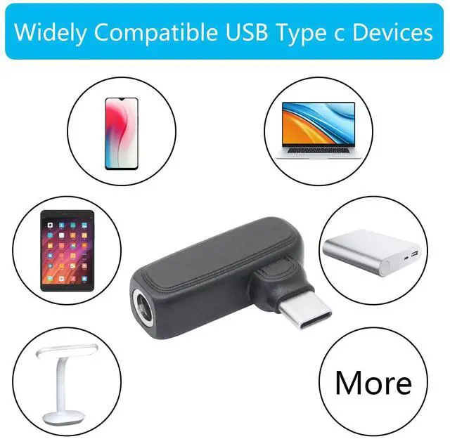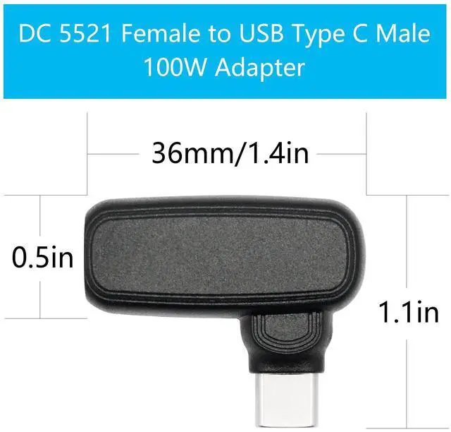 1Pcs 90 Degree DC 5.5mm x 2.1mm Female to USB C Male Plug Power Charging Adapter